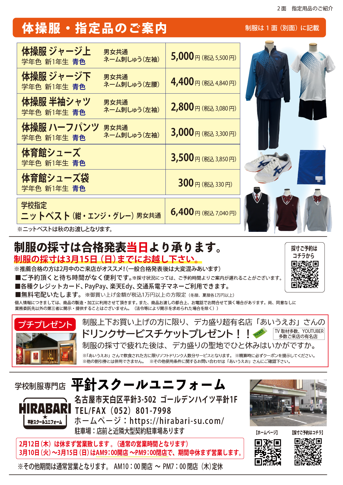 制服のご注文締切日がありますので、ぜひお早めのご来店下さい。
