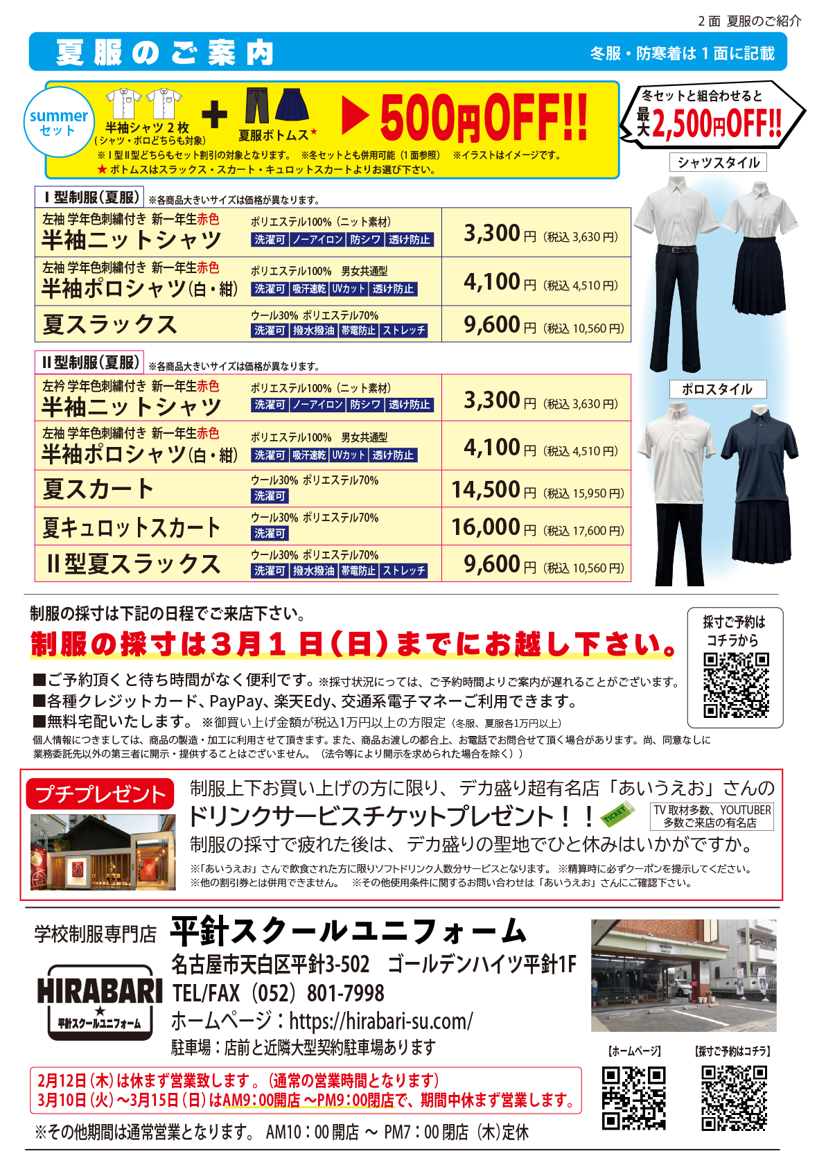 制服のご注文締切日がありますので、ぜひお早めのご来店下さい。