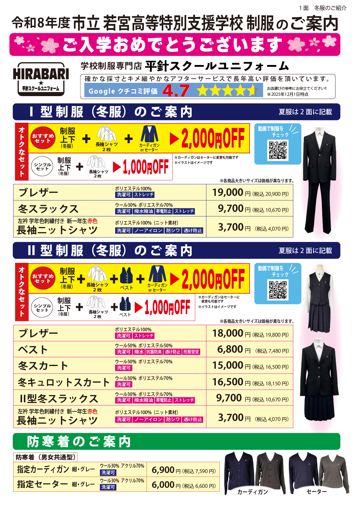 若宮高等特別支援学校の制服も「平針スクールユニフォーム」に お任せ下さい。